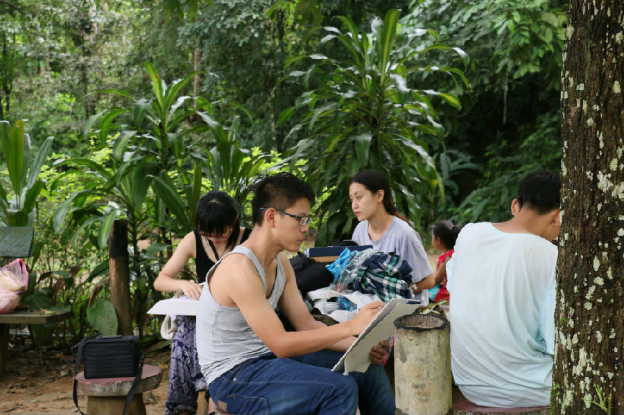 (摄影 王铭毓)9月6日上午,老挝写生实习小组老师和同学们进行了第一次写生讲评。写生组老师以前一天速写作业为对象阐述了对速写的认识和看法,希望帮助大家更自由更自主的表达所见所感,反映当地特点,展现个体感受。随后,写生组展开写生活动。